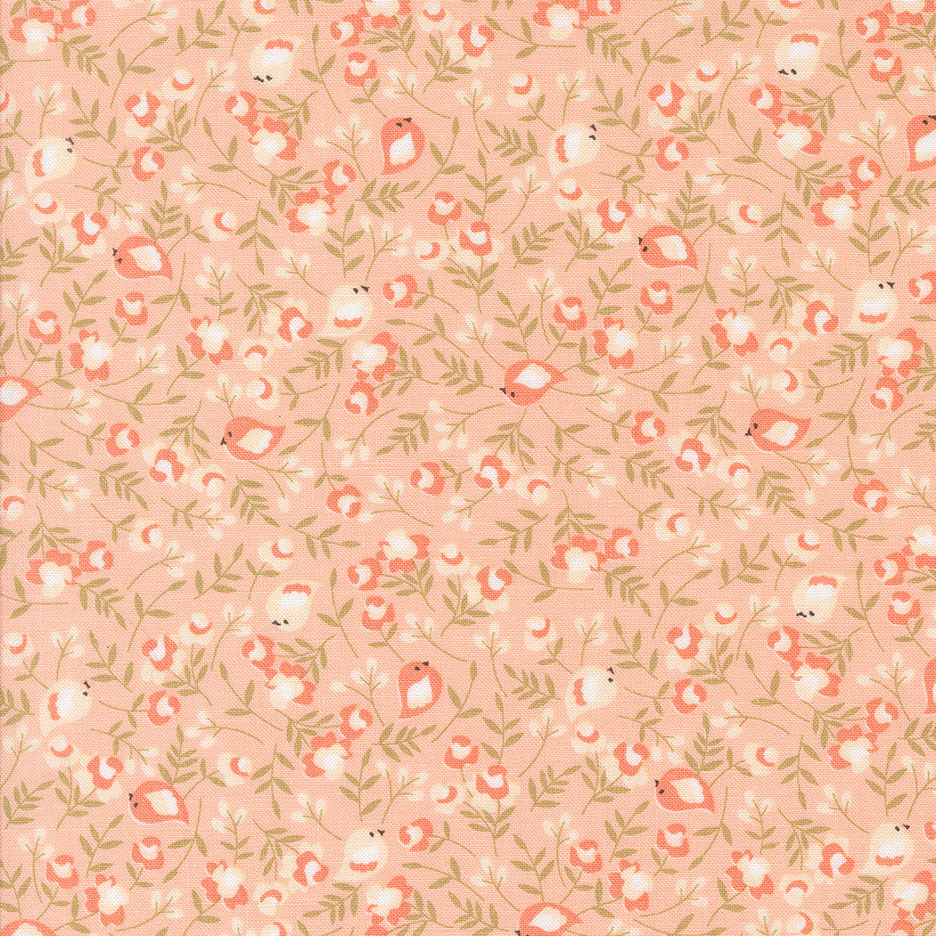 This is the small floral print with birds in bubble gum from the Abloom collection by Corey Yoder of Coriander Quilts for Moda Fabrics